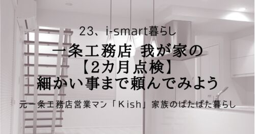 一条 i-smartの我が家の【2カ月点検】です。細かい不具合、傷もアフターを依頼してみました。それとロスガード90と排気口のフィルター交換!